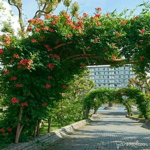 色鮮やかな花 ノウゼンカズラのアーチ 梅雨入りもまだなのに… この花が咲くと 夏が来たなぁと思います♪