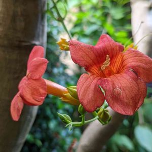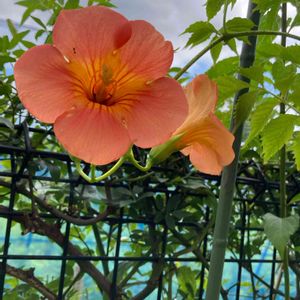 ノウゼンカズラ 太い枝が折れたけれど、脇芽が育って咲いてます。