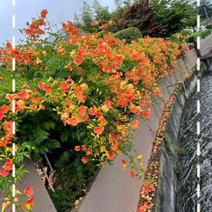 近所の友人宅のノウゼンカズラが咲くと一気に南国気分になります🌴 この下で子どもが小さい頃は水遊びしたよねーと懐かしい話をして来ました☺️