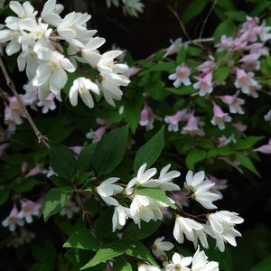 🤍ヒメウツギ、、日本古来の白く控え目な花 💗ショウキウツギ、、ウツギといえどもウツギの仲間では無くてアベリアの近縁