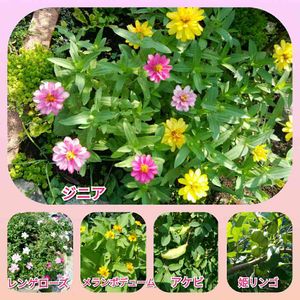 毎日本当に暑くてクーラー漬けですが、 ジニアやメランポデューム、レンゲローズなど元気に咲いています。😊🎶 花見ると癒されて元気がもらえますね。 アケビや姫リンゴも順調に育っていて 秋が待ち遠しいなあ。🍁