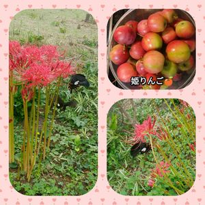 関東の台風はかなり予報より逸れていって良かった~👍 今日は姫りんご🍎を採りました。 どれも黒くなってる所があちこちあって 良い出来では無いけど、きれいな所だけ 明日にでもジャムにします。 味はめちゃくちゃすっぱい。😆 彼岸花にクロアゲハが来てたのだけど、 なかなかフォトを思うように撮らせてくれませんてした~💦 彼岸花の赤にクロアゲハは映えて綺麗でした。✨