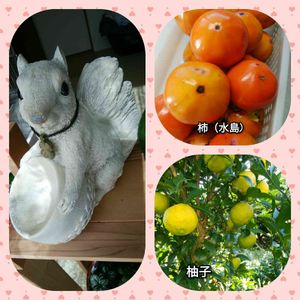 今年の夏は暑すぎたせいか、 うちの柿はいつもより早く熟し始めあっという間に半分以上が ベトベトになってしまった~。😱💦 まともに食べられそうなのは 20個位かな。 柚子は大きめで沢山採れそうで嬉しいな。😊🎶👍 娘から可愛いリスのガーデンオーナメントを貰った。 入れるところ小さいから 多肉がいいかな~😆✨💕