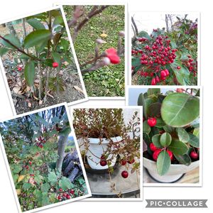 庭の赤い実 花のない落ち葉だらけの庭にも赤い身があちこち可愛い💕