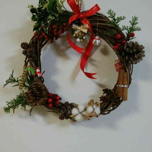 今日は割とお日様が出て晴れてたので 午前中は、スナップエンドウの苗と ツタンカーメンの豆の苗を畑ガーデンに 植えつけました。 雪が降ると重みで苗が折れたりするので うまく育つといいなぁ~。😅 あと、新芽をキジがつついて食べてダメになった事もあったので防鳥ネットもしておいた。 午後は先日100均で買ってきた物や 在り合わせの物でクリスマスリースなど作ってみた。 リース本体は家のアケビの蔓を束ねておいたもの。 ヒイラギの葉は庭木から、赤い小さな方の実は空き地に咲くのいばらの実。 大きな松ぼっくりも昔何処かで拾ってきたもの。 小さなオーナメントなどは毎年の使い回し。 100均の小さな松ぼっくりや八角をどうつけようかと考え結局、ビーズで使う細いワイヤーで絡めて止めた。 シナモンや、八角がスパイシーな良い香りで作ってる間香りがただよってました~😊👍🎶