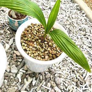 アフリカチリヤシ🌴 植替後です。 納まりが悪く無理矢理鉢に押込ましたが二ヶ月程経ち成長し始めましたので上手く活着した様です。^^ 因みに画像は植替直後です。