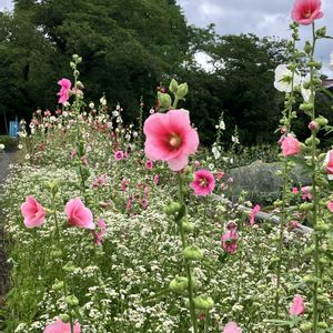秋川流域の タチアオイの小径 コロナ以来だから6年ぶり? 実に久しぶりに訪れました。 その間もお花たちは変わることなく、毎年咲き続けていたのでしょうね🌸