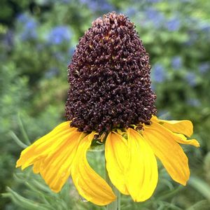 ◯ルドベキア マキシマ◯ 昨年秋頃に園芸店で目にして初めて植えたルドベキア マキシマ。 ラベルより少し低めに背丈がスクっと150cmくらい伸び、写真通りのこんなお花が咲いてくれましたけれども😅 まさかの1本スクっと伸びて大きなお花が1つしか咲かないとは💦 勝手なイメージで背丈が高くなり、この小さい花がたくさん咲いてくれると思い込んでいました😅💦 それにしても‥真ん中のモジャモジャ加減が面白いですね😅葉の質感も一般的なルドベキアと違ってツルツル系です。 写真3枚目が全体像です💦 この花がどのくらいの間咲いて、どのように変化するのかじっくり観察したいと思います😅脇芽、出ないかなあ🤔