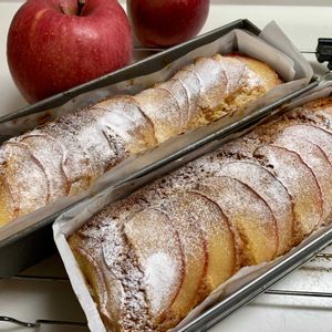りんごのパウンドケーキ 地元のりんごでパウンドケーキ焼いてみたわ 生地のなかにも.りんごが入っているのよ パウンドケーキ型の一つはクッキーが入っていた空き缶 goodアイデアでしょう? 友達へのプレゼント用に お味? そりゃ.もちろん美味しいわよ 魔法かけたもの(微笑) 安曇野お菓子工房店主・ 安曇野の魔女より🧙♀️