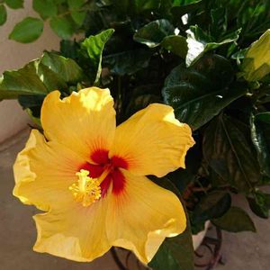 おはようございます✨ ハイビスカス🌺が大きな花を咲かせました✨ このハイビスカス🌺は昨日花屋さんで見つけて、連れて帰った子です😄置場所ないのに(笑)何とか工夫して増やしてますo(*゚∀゚*)o