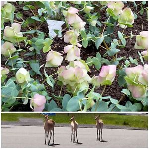 つい最近GSの中で教えてもらったオレガノケントビューティー🌼*・ たまたま見つけて即買いしました。かわいい♡ 今日は久々の快晴☀職場の駐車場に小鹿🦌が6頭いたのでパチリ。
