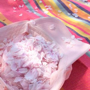 こないだのお花見でお弁当食べながら、 すんごい量の桜吹雪が舞って来て お弁当にも降り積もったから、 子ども達とゲラゲラ笑いながら食べました🤣 その桜吹雪を帽子に集めて持って帰ったよ🌸