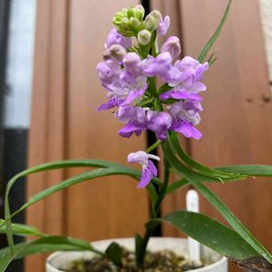 夢ちどり(ウチョウラン) 千葉県の(有)蘭裕園で作出されたミニミニラン 昨日ビバホーム赤羽店から迎えました。花の大きさは1.5cmほどです✨