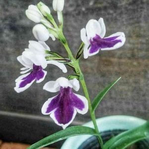 ウチョウランの園芸種'夢ちどり' 紫色のウチョウランを旦那さんのお土産で貰って、そのあとホムセンでこの綺麗な模様の子をお迎えしました 紫の子は外に出したら気温が高くてすぐに花が終わってしまったので、この子は室内で長く楽しんでました そろそろ花が終わりそうなので記念に投稿 ウチョウランは羽蝶蘭と書きますが、ホントに可愛らしい花姿 また来年も咲きますように…