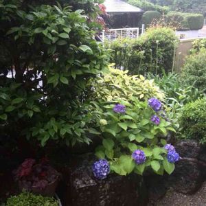 今日は台風の影響で雨の予報なので、出来る限りの雑草抜きをして、広がってほしいオノエテンマとクリーピングタイムを雑草があった場所に挿しました。 雨が降ってきたら根がつくはず!?期待してます♪ アジサイが生き生き! 雑草も生き生きの季節ですね。
