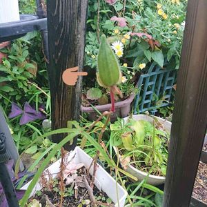 おはようございます💕散歩中に見つけた超長〜いオクラさん🤗