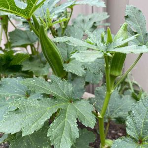 オクラがなり始めました あともう少しで食べ頃なの かなぁ♪