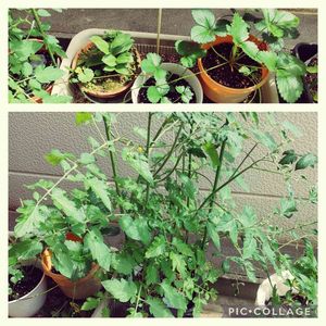 陽当たりがお昼頃から当たる場所☀️ ちゃんと育つのかな❓ 実験でミニトマトを育ててみたところ🌱… まずまずゆっくりと実を付けてるようですね🎵 数年ぶりに「また、会えたね🤗」って感じで、 再会した事に満足//❤️✨✨