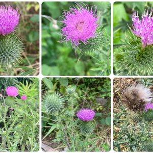 今年出会った アザミ たち *今日のお花* 1️⃣アザミの綿毛 ヨウシュヤマゴボウ 7/24 2️⃣セイヨウトゲアザミ 西洋刺薊 4/23 3️⃣アメリカオニアザミ 6/19 4️⃣ノアザミ? 5/2 キツネアザミは写真🤳撮ってなかった😆 アザミは種類がたくさんあって、お名前がわからないのが多いです
