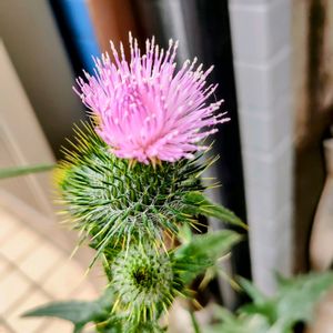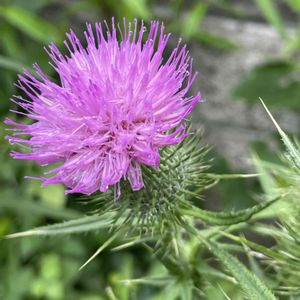 今日のお花 🩷アザミ🩷 アメリカオニアザミ🩷💚です。 バチパチ弾けていて可愛いお花です。触ったら痛そうー 今年の初夏のpic