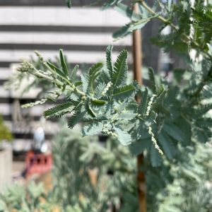 ギンヨウアカシア ブルーブッシュの隣にある ギンヨウアカシアにも花芽がついてた😆 季節間違えてるのかな。 大丈夫かしらん。