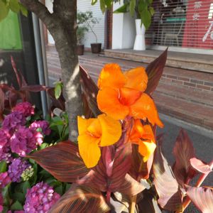 朝の陽ざしで周囲が明るくなり、反射光で花が輝いているよ出した。