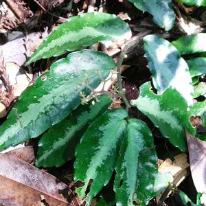 滝の近くの斜面に見たことない綺麗な葉を見つけました。🔎調べてみるとナガバサンショウソウのようです。対馬と宮崎県にだけ自生している植物らしいです。観葉植物のペリオニアの仲間のようです。