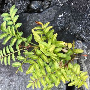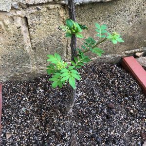 海の近くの近所の公園の擁壁の隙間から出ていました。 山椒みたいな葉で幹にトゲもありました。