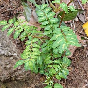 山椒に似ているみたいですが、白い斑が入っていてよく分かりません。