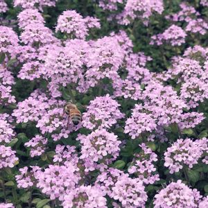 何やらの蜜を吸う蜜蜂🐝 タイムかな~ 下にタイムはあるけど、何本か妙に伸びてる😆