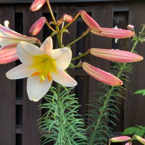 リーガルリリー 半日陰に移したらやはり花数が減ったけど、それも可愛い✨ 次は西陽がもう少し長く当たる場所へ引っ越ししようかな