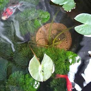 念願の睡蓮鉢を手に入れました😃 姫睡蓮(スノープリンセス)とアナカリスを✨ 巡り巡ってわが家に来たメダカ4匹も泳いでます🐟~ 白い花が咲く予定です😁
