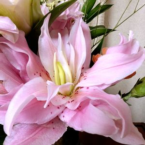 八重咲きのユリ頂きました✨ 花粉見えないし…母にお供えしよう! 婆ちゃま…頼む🙏 爺の…レム睡眠行動障害が落ち着くよう祈る🙏