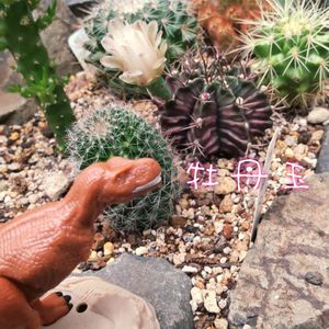 地植えの牡丹玉🟢 お花が咲いてる🥰🌵 台風がまっすぐこちらに来てますが 地植えゾーンの対策はどうすれば😱💨 ハッピーセットの🦖恐竜が 白眼⚪むいてる〜