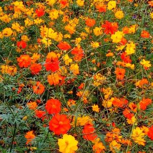 🔸キバナコスモス🔸 空いたスペースに種を2袋蒔きました😁 今年は、発芽率が良いようです(*´σー`)エヘヘ