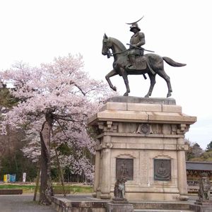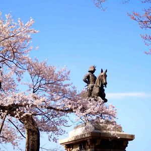 【仙台】 今日は、雨☔ 間もなく5月を迎えますね。 初春を懐かしむ思いで眺める 今年4月上旬の 桜と伊達政宗騎馬像① 満開の桜🌸がとてもきれいでした。 桜並木を伊達政宗公が馬にまたがって散歩すると、この写真のような光景になるのでしょう。