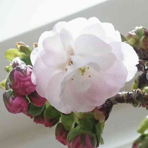 【仙台・観察日記】 八重桜が、毎日、どんどん花を咲かせてくれています。 昨秋、花芽を付けてから、待ちに待った八重桜の花ですので 同時にたくさんの花が咲くよりも 日々、花が一つ一つ増えていく方が、楽しいですヘ(^o^)/ 仕事を終えて帰り、真っ先にベランダを見る楽しみがあります。 幾重もの薄ピンクの花びらが開いていると、「かわいい~😍」と思います。 これが楽しいんです(^_^)v 秋のさくらモミジと併せて、大きな喜びをもらえるので 一年間、お水やりも、台風からの保護も、苦になりません。 八重桜に、感謝しています。 今回は、皆さんに見ていただくというより、私の喜び表現の投稿になってしまいました🙇