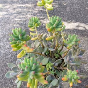 おはようございます🌿 11月も下旬になりました。 近くの緑地にそびえ立つケヤキから紅葉した葉が落ち、黄色い葉の絨毯が出来ていました🍁 今朝の写真は、一昨日に続いて『葉挿し』しました多肉のその後になります。 ◇1.3枚目→画像 2枚目の 8ヶ月後(正面/背面) ◇2枚目→乙女心 1カット、ジュノンボーイの葉挿し(2023年3月〜) ◇4枚目→おぼろ月の葉挿し育ち ◇5枚目→いろいろな多肉の葉挿し育ち 1〜3枚目は、今年の春に、茎立ちして大きく育ちましたジュノンボーイの苗からもいだ葉を鉢一周に挿したものです。 真ん中が空いていて寂しいな…と思い、大きく育ち、茎がぐにゃりと曲がり始めた乙女心をひとつカットして挿しました🌱 どちらの葉挿しの親株も、雨ざらしで丈夫に育ってきましたので、ジュノンボーイが発芽してからは、今の定位置(庭に直置き)で過ごしてきました。 現在、春に挿したときには予想できなかった程、よく育ちました! びっくりしています。 4.5枚目は、昨年の秋に育苗トレーや空き容器に葉挿ししたものです。 私は葉挿しがある程度発芽しましたら、置き場所問題があるため、庭の空いている場所に直置きしています。 葉挿し育ち組は、主に、寄せ植え鉢の中で枯れた多肉の代わりに大活躍してくれます。 気兼ねなく使えるところが最大の魅力です💗 但し、おぼろ月は巨大化するため、寄せ植えにはあまり使いません。 今、おぼろ月の葉挿し育ち組は庭のあちこちで観賞用になっています。 我が家では、防寒は毎年ギリギリまで待っています。 例年、12月中旬頃から寒冷紗のみ、もしくは寒冷紗とビニールクロスをかけています。 毎日続きます朝晩の防寒作業はとても大変ですが、外管理を続けていくみなさん、共に乗り越えて、再び春の生長期を迎えましょう🌸 防寒作業を頑張ると、毎朝キラキラ輝く紅葉した姿に出会えます。 ご褒美だと思っています💎 一番下の子供の夢は ‘’収益をあげられるYouTuber‘’’になること’なのですが、将来、もし収益が入ったら何が欲しい?と聞かれたので、『ビニールハウス』と答えました。 すると、「業者さんに頼んであげるよ」と即座に返ってきて、えっ、業者さん!?、とただただ、母は驚きました💦💦