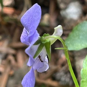 オオタチツボスミレ スミレ科スミレ属 在来種 北海道ー九州まで分布 湿り気のある明るい林床、林縁、日本海側に多い 葉は円心形で縁に波状の鋸歯 葉脈に沿って凹み柔らかく波打つ 花は淡紫色から淡赤紫色と変異が多い 葉腋から花を付ける 4/26撮影