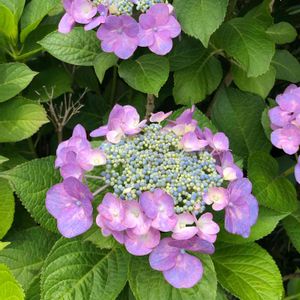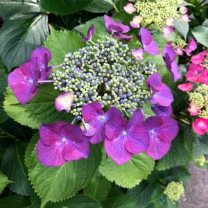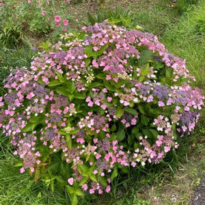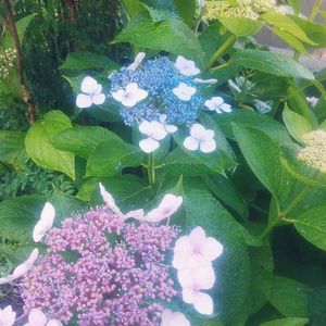 ランチ🌭を買いに行った先に 咲いていました。 かわいい色合い💕のガク紫陽花でした❣️