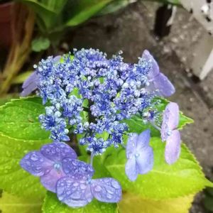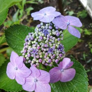 梅雨に濡れる額紫陽花(ガクアジサイ)