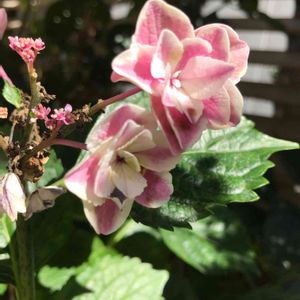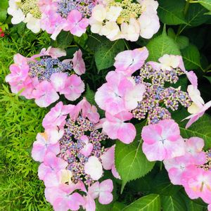 裏庭に地植えしたピンクのガクアジサイも良い具合に真ん中の花が開いてきました。 (*´∇`*)