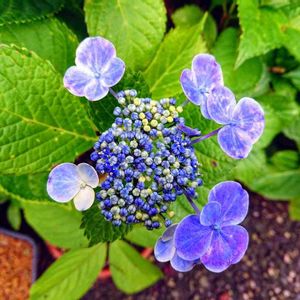 裏庭に地植えしたブルーのガクアジサイが開花しました。 (*´∇`*)