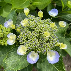 こんにちは:-) 蒸し暑いですよ〜💦💦 涼しげなガク紫陽花が咲いてました💜🔵🌿