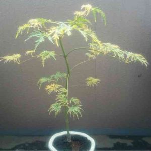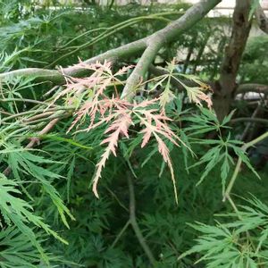 班枝垂もみじ 花纏(はなまとい)です 細い葉先と色合いが気に入って買ってしまいました(>_<)でも下の枝が二本内側に入り組んで生えていて、どうしようか考え中です。右上のは、一年中紅くて良いかと思ったら紅葉の🍁季節は落葉してしまいガッカリ(Ŏ◊Ŏ ‧̣̥̇)そういうものなのかな。