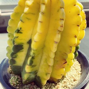 長く維持するのは難しいであろうサボテンですがそのうち商業ベースに乗ってくると思われます もしかしたら、もう乗っているのかなぁ? 成長点付近や上、半分に斑が入る他ではあまり見かけ無い斑の入り方をしています🤔 育成中の子たちをとあるハウスからお連れしました