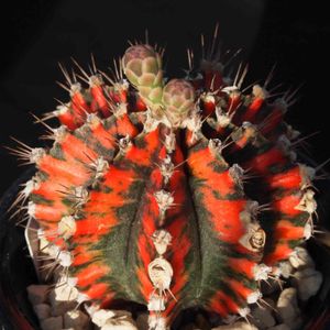 緋牡丹錦✨ サボテン園のお兄さんに『赤い斑入りの小さなサボテンが欲しいです😊』と伝えたら、良さそうな株を3株選んでくれました🌵✨ その中で斑がまんべんなく入っているこちらを選んで大津絵と一緒に買ってきました😆 お値段は実生なので小さいけど立派でした……が、悔いはないです😤👍