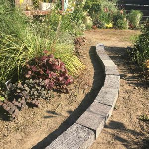 おはようございます✨ 週末 石塀と石塀の間にあった フェンスを抜いて 小路をつくりました✨✨ 周りには アジュガをうえる予定です! 早くしないと寒くなっちゃう💦