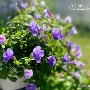 挿し木を頂いたカタリーナ、少し増えてきて、綺麗な紫色の花を咲かせています💜💜💜 こんな風に枝垂れるんだなぁ☺️ 私も挿し木に挑戦して、ハンギングにしようかな💜