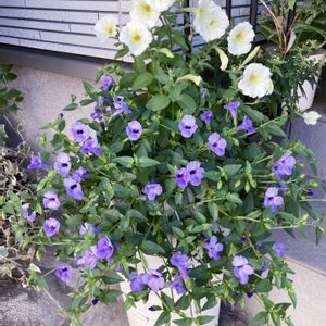 水曜日はブルー系のお花で💙💜💙 ①…匂蕃茉莉が2度目の開花 今年はこの暑い中、たくさん 咲いてます ②③ ブルーエルフィン(ウイング) 雨の中イキイキしてます ④… 挿し芽のアメリカンブルーが 可愛く咲きました ⑤…トレニア カタリーナ ブルーリバー と🤍のサフィニアを寄せてみました どうなるかなぁ…🧐? 溢れ出すかしら😅💦 傍には親株のアメリカンブルーの鉢
